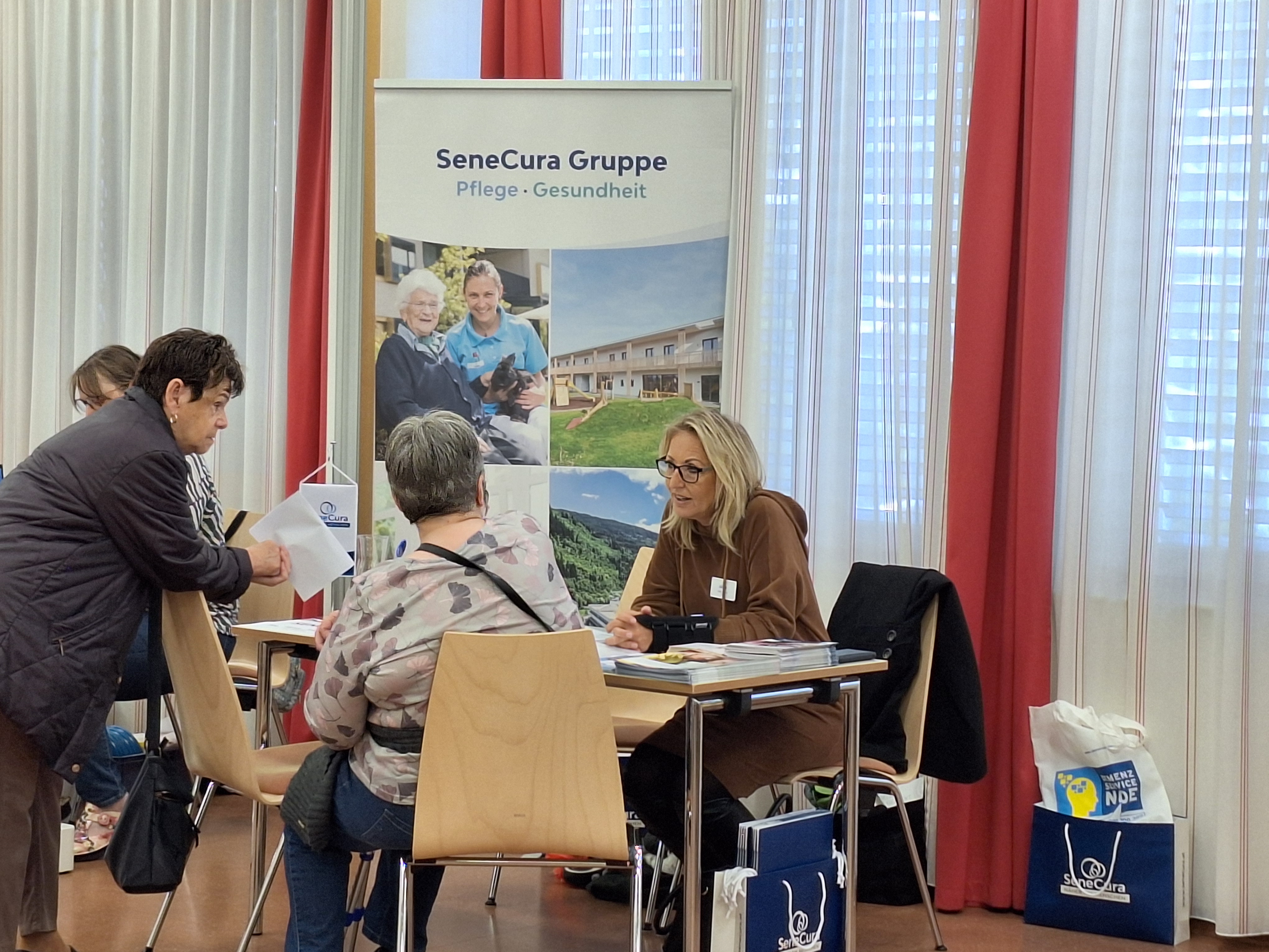 Am 20. April 2024 fand der erste örtliche Gesundheitstag der Seniorinnen sowie Senioren statt und das SeneCura Sozialzentrum Traiskirchen war mit einem Stand vertreten. Von 10:00 bis 16:00 Uhr standen PDL Petra Juracek und HL Würcher Manuela zur Verfügung und präsentierten das Angebot des SeneCura Sozialzentrums Traiskirchen, berieten die Interessenten in Bezug auf die Aufnahmen in ein Sozialzentrum oder auch Pflegegeld. Der Traiskirchner Gesundheitstags war gut besucht und es gab einige interessante Vorträge und Infostände rund um das Thema Gesundheit im Alter. Die Besucher hatten zudem die Möglichkeit Sehtests, Hörtests, Lungenfunktionstests oder auch Fußbettanalysen durchzuführen.