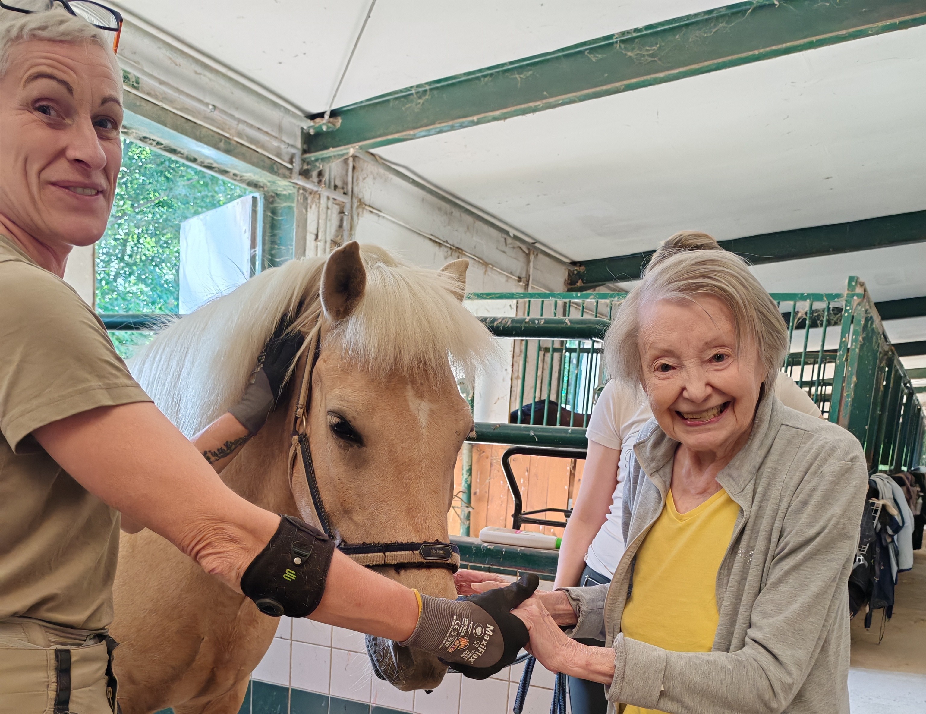 Im SeneCura Sozialzentrum Traiskirchen wurde kürzlich ein ganz besonderer Herzenswunsch erfüllt. Die Bewohnerin Hilde Kuttlwascher, eine passionierte Reiterin, wünschte sich sehnlichst, wieder einmal ein Pferd zu besuchen. Dank der Initiative von Seniorenbetreuerin Karin Baumgartner konnte ein Besuch im Reitstall Traiskirchen organisiert werden. Mit Unterstützung der Hufschmiedin Andrea Schmaderer war es möglich, dass die Bewohnerin das Pferd auch gefahrlos streicheln konnte. Die Freude war ihr dabei deutlich anzusehen – ein unvergesslicher Moment voller Glück und schöner Erinnerungen.